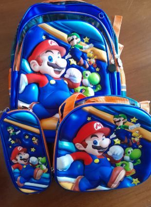 ¡Vive la aventura con este increíble combo escolar 3D de Mario Bros! Perfecto para los fans del famoso fontanero, con todo lo necesario para la escuela o cualquier aventura. Incluye mochila 3D de Mario Bros con carrito desmontable, lunchera térmica y cartuchera 3D de Mario Bros.